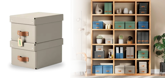 Maradjon rendezett a LEITZ Puro fedeles karton tárolódobozok használatával. Ideálisak A5 méretű dokumentumok, kisebb elektronikai eszközök, CD/DVD-k, játékok és egyéb eszközök tárolására. A bolygót kímélő dobozok 100%-ban újrahasznosított, FSC tanúsítvánnyal rendelkező kartonból készülnek, és használat után teljesen szétszedhetőek, így 100%-ban újrahasznosíthatók. A természet tisztasága és egyszerűsége által inspirált földszínek tökéletesen kiegészítik a belső tereket, és nyugalmat varázsolnak a szobákba és irodákba.