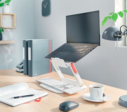 A LEITZ „Ergo” notebook állvány a tökéletes ergonomikus magasságba emeli a laptop képernyőjét, így kényelmesebb betekintési szöget és testtartást biztosít. Különböző magasság és dőlésszög kombinációk kis helyigény mellett. Minimál, modern formatervezésével ez a stílusos laptoptartó állvány segít az ideális munkamagasság beállításában, javítja a közérzetet és támogatja egészségedet. Laptopokhoz és Macbookokhoz 15” méretig.