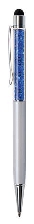 Golyóstoll, krémfehér, felül zafírkék SWAROVSKI® kristállyal töltve, érintővel, 14 cm, ART CRYSTELLA®