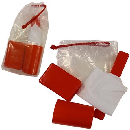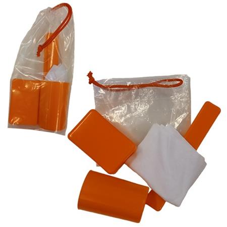 Tisztasági csomag összehúzható átlátszó zsinóros tasakban.