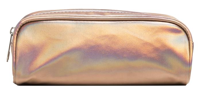 Fémes holografikus hatású poliuretánból készült tolltartó.