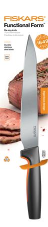 A Fiskars Functional Form ™ szeletelő kés egy hosszú, egyenes, hegyes végű kés, amelyet kényelmes használni és könnyű kezelni