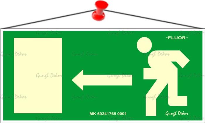 Információs tábla, 25x11,5 cm, fluoreszkáló, utánvilágítós, "Menekülési irány balra"
